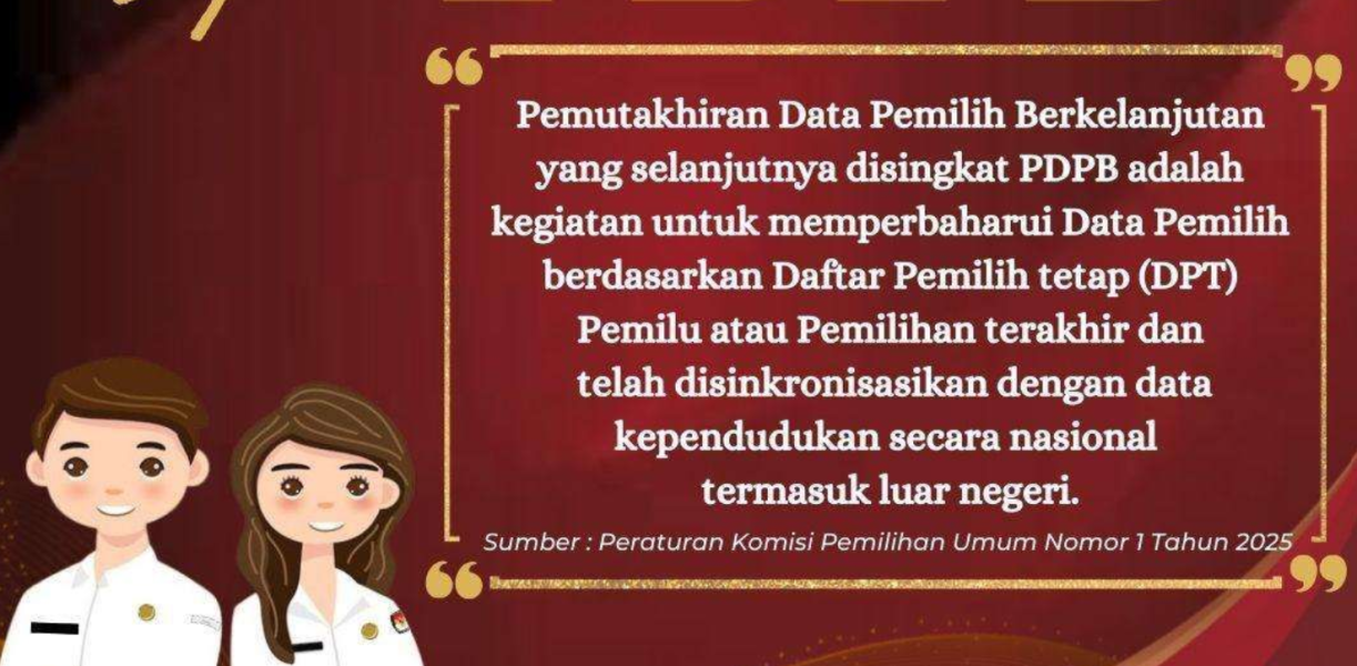 Oleh karena itu, KPU Bangka barat akan melaksanakan kegiatan Pemutakhiran Data Pemilih Berkelanjutan (PDPB) secara berkala dalam tiap 3 (tiga) bulan. Pelaksanaan ini diatur dalam Peraturan Komisi Pemilihan Umum Republik Indonesia nomor 1 Tahun 2025 tentang Pemutakhiran Data Pemilih Berkelanjutan. Dalam pelaksanaanya, tentunya KPU Bangka barat akan melakukan koordinasi dengan stakehorders seperti Bawaslu, Dinas yang melakukan urusan kependudukan dan pencatatan sipil, Lembaga Pemasyarakatan dan/atau rumah tahanan negara, TNI dan Polri, Pemerintah tingkat kecamatan dan Desa serta instansi terkait lainnya.