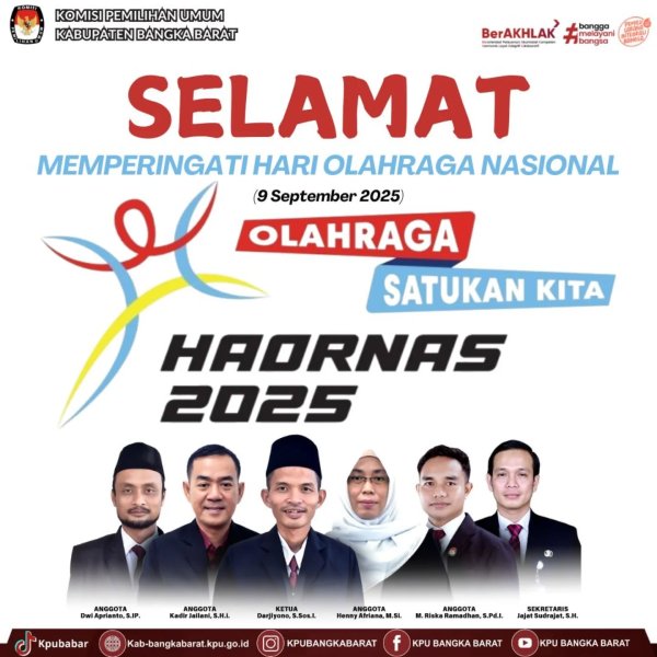 Komisi Pemilihan Umum (KPU) Kabupaten Bangka Barat mengucapkan Selamat Memperingati Hari Olahraga Nasional (9 September 2025).