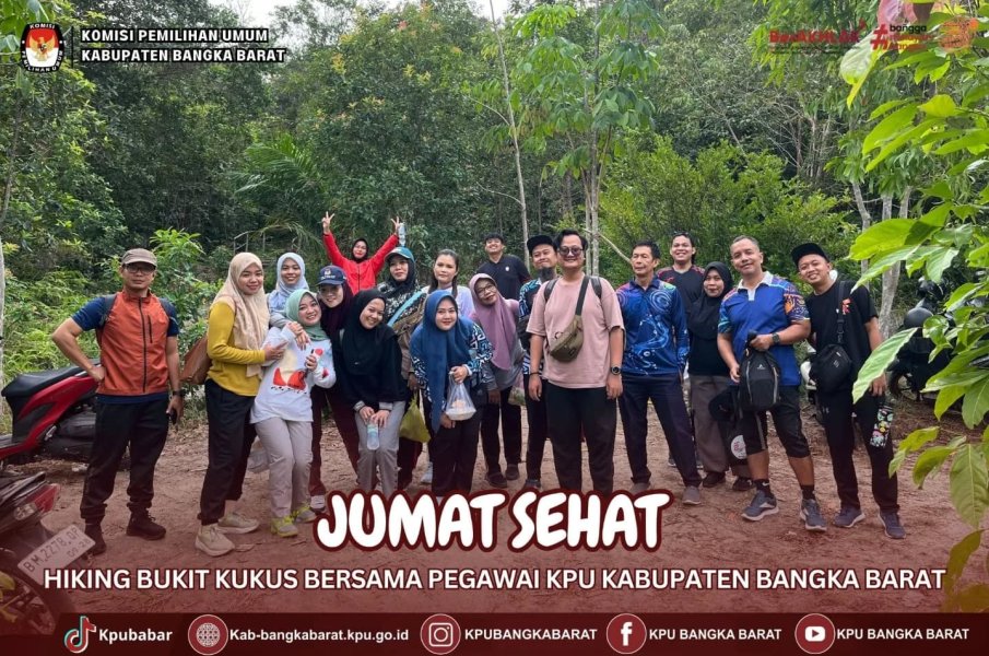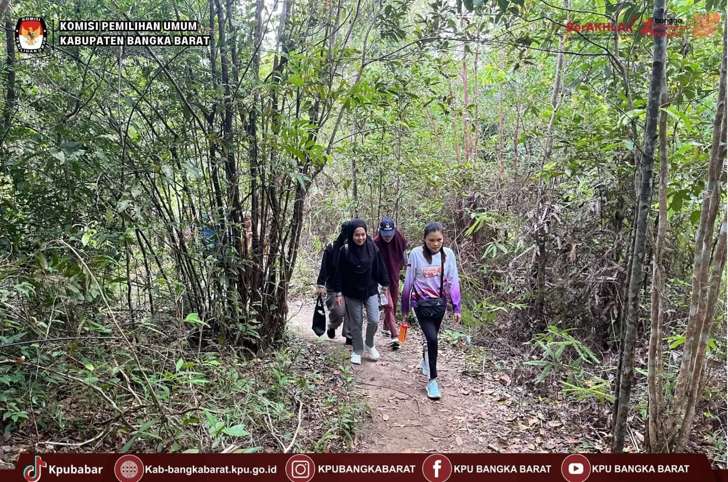 Komisi Pemilihan Umum (KPU) Kabupaten Bangka Barat melaksanakan kegiatan Jumat Sehat dengan melakukan hiking di Bukit Kukus, Mentok.