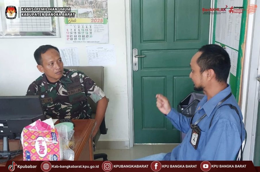 Koordinasi Terkait Kelengkapan Dukungan Data Daftar Pemilih Berkelanjutan (DPB) dengan Kodim 0431 Bangka Barat