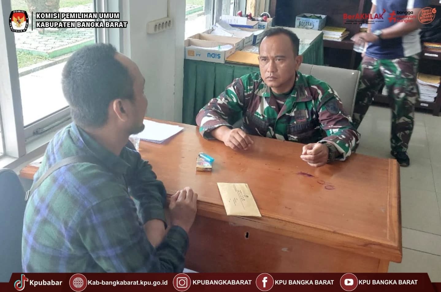 Anggota Komisi Pemilihan Umum (KPU) Kabupaten Bangka Barat Bapak Dwi Aprianto, S.IP. melakukan Koordinasi terkait permintaan kelengkapan dukungan data ke KODIM 0413 Kabupaten Bangka Barat.
