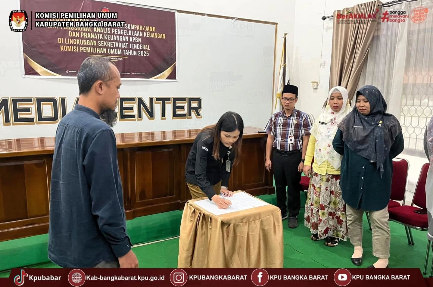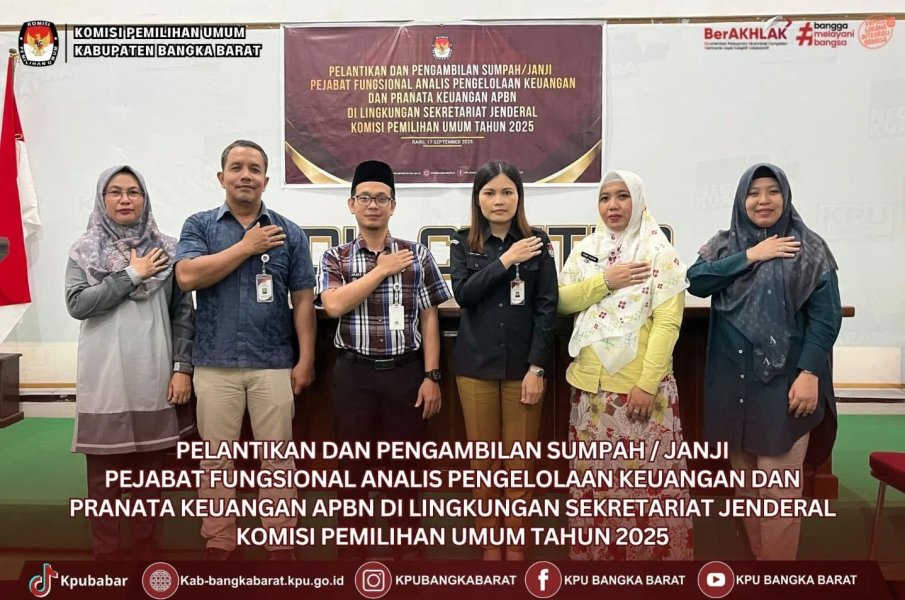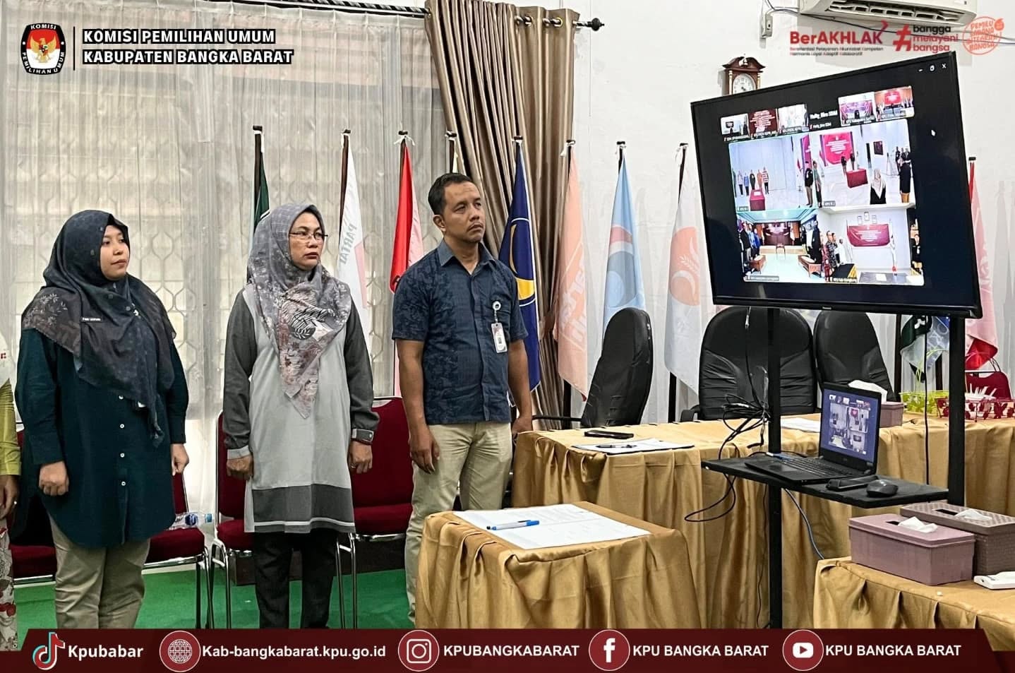 Komisi Pemilihan Umum (KPU) Kabupaten Bangka Barat mengukuti Kegiatan Pelantikan dan Pengambilan Sumpah/Janji Pejabat Fungsional Analis Pengelolaan Keuangan dan Pranata Keuangan APBN di Lingkungan Sekretariat Jenderal Komisi Pemilihan Umum Tahun 2025 melalui zoom meeting di ruang rapat Kantor KPU Kabupaten Bangka Barat, Mentok.