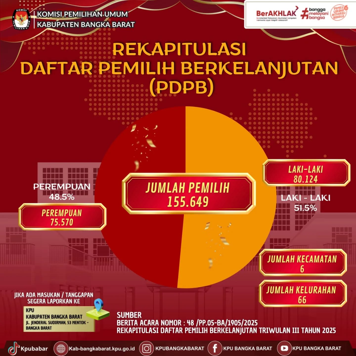 Berikut kami sampaikan Hasil Rekapitulasi Daftar Pemilih Berkelanjutan (DPB) Bangka Barat Triwulan III tahun 2025. Dengan rincian sebagai berikut:
