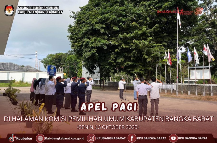 Komisi Pemilihan Umum (KPU) Kabupaten Bangka Barat melaksanakan apel pagi di halaman kantor KPU Kabupaten Bangka Barat, Mentok.