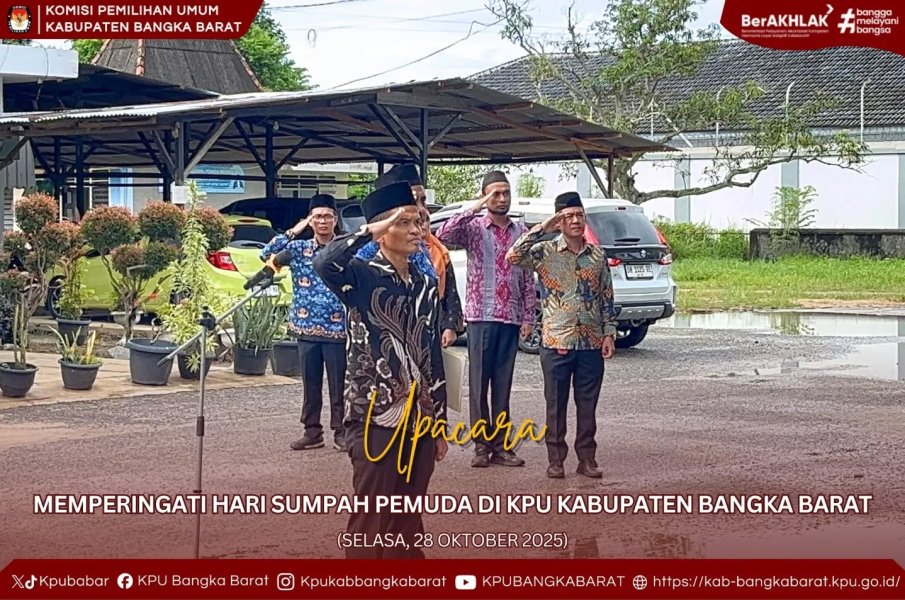 Komisi Pemilihan Umum (KPU) Kabupaten Bangka Barat melaksanakan upacara dalam rangka memperingati Hari Sumpah Pemuda ke-97 di halaman kantor KPU Kabupaten Bangka Barat, Selasa (28/10/2025).