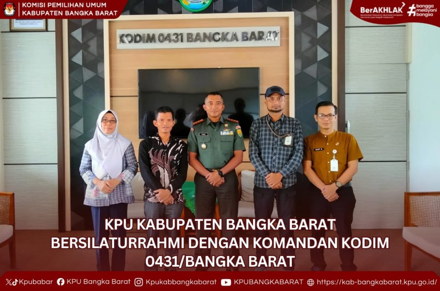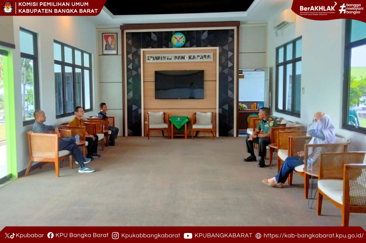 Komisi Pemilihan Umum (KPU) Kabupaten Bangka Barat melakukan kunjungan silaturahmi ke Kodim 0431/Bangka Barat pada hari Kamis (6/11/2025) Kunjungan ini dilakukan langsung oleh Ketua KPU Kabupaten Bangka Barat, Bapak Darjiyono, S.Sos.I., beserta jajaran Komisioner dan Sekretaris Komisi Pemilihan Umum Kabupaten Bangka Barat.
