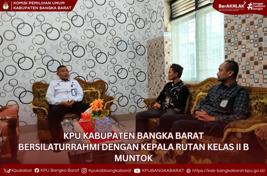 Komisi Pemilihan Umum (KPU) Kabupaten Bangka Barat melakukan kunjungan silaturahmi ke Rumah Tahanan Negara (Rutan) Kelas IIb Muntok pada hari Kamis (6/11/2025) Kunjungan ini dipimpin langsung oleh Ketua KPU Kabupaten Bangka Barat, Bapak Darjiyono, S.Sos.I., beserta jajaran komisioner dan Sekretaris.