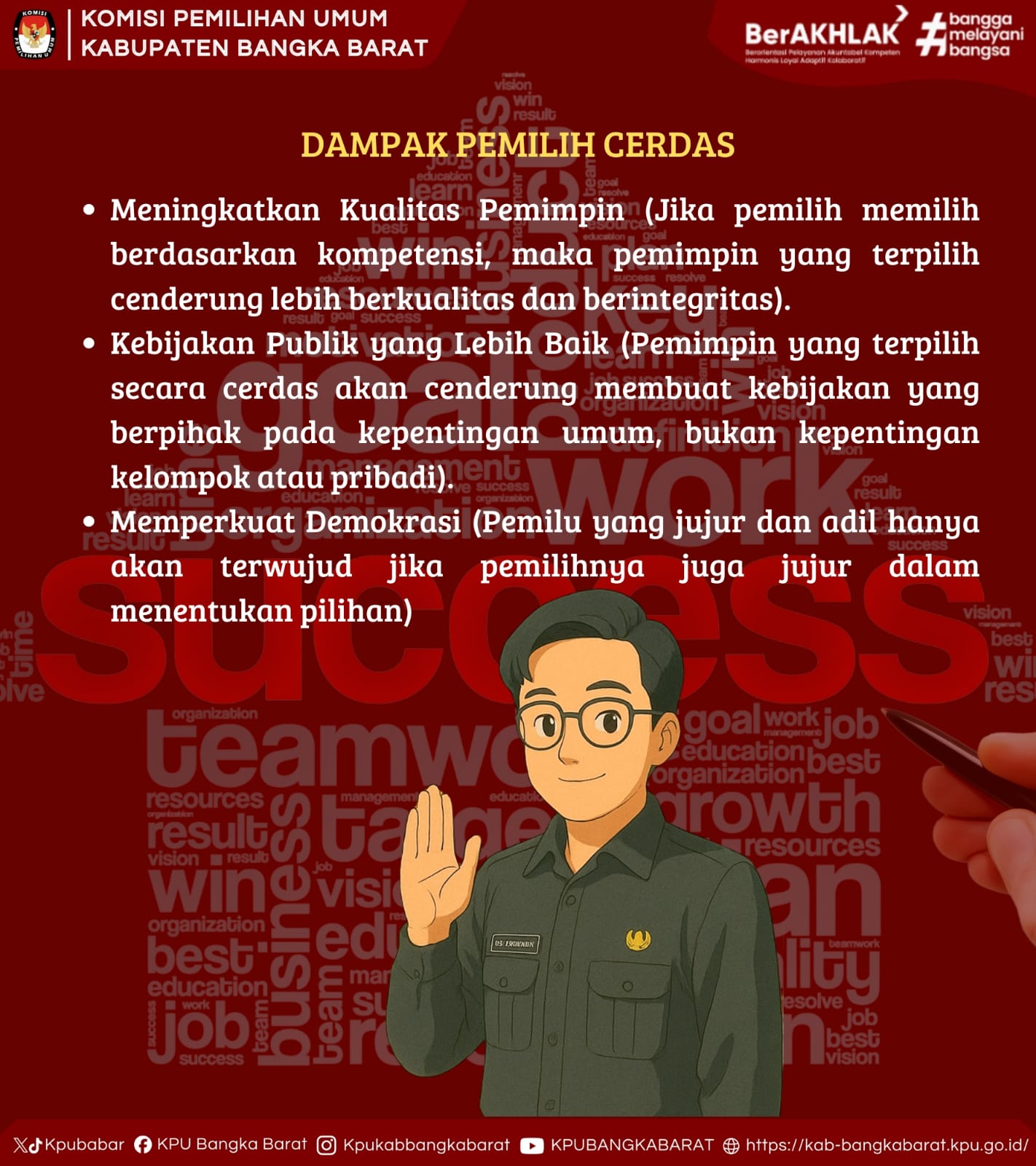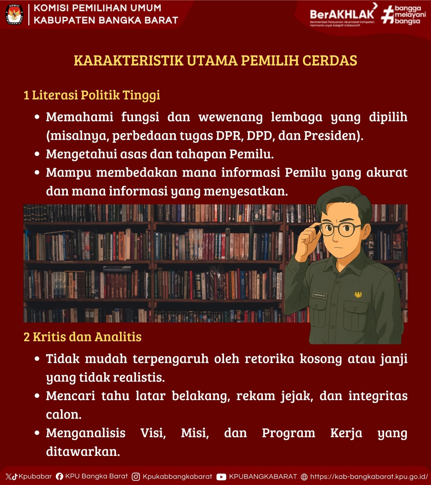 Pemilih cerdas adalah pemilih yang mampu mengolah informasi secara kritis, menilai rekam jejak calon secara objektif, dan memilih dengan kesadaran serta tanggung jawab.