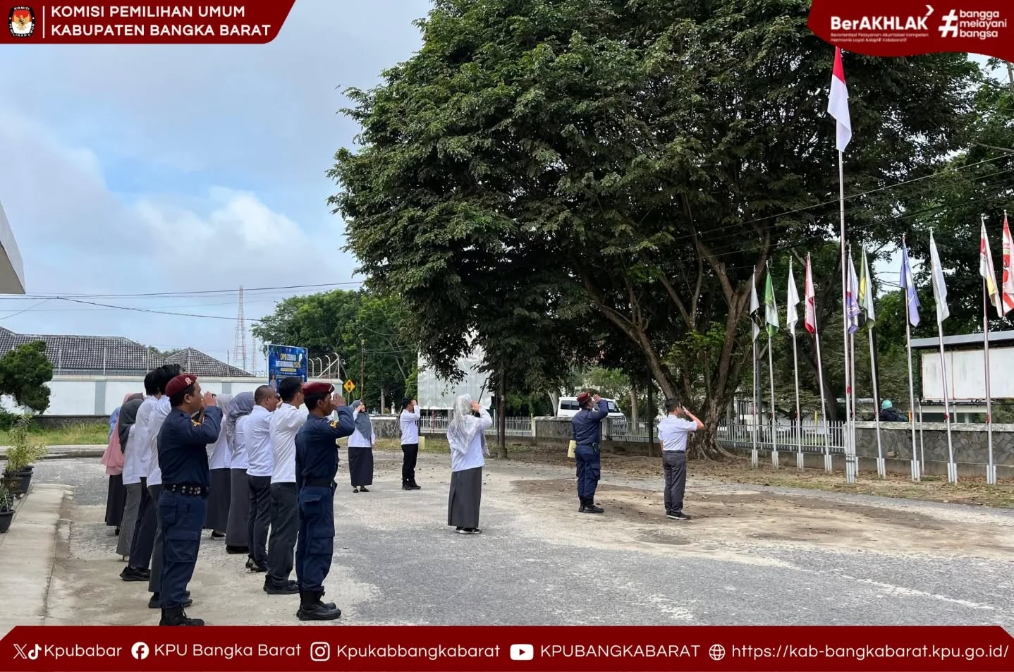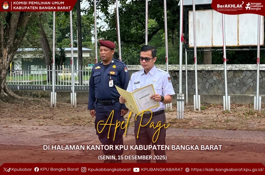 Mentok — Komisi Pemilihan Umum (KPU) Kabupaten Bangka Barat melaksanakan Apel Pagi di halaman Kantor KPU Kabupaten Bangka Barat pada Senin pagi (15/12/2025). Apel pagi tersebut diikuti oleh seluruh jajaran pimpinan dan pegawai KPU Kabupaten Bangka Barat sebagai bagian dari rutinitas pembinaan kedisiplinan dan peningkatan semangat kerja.