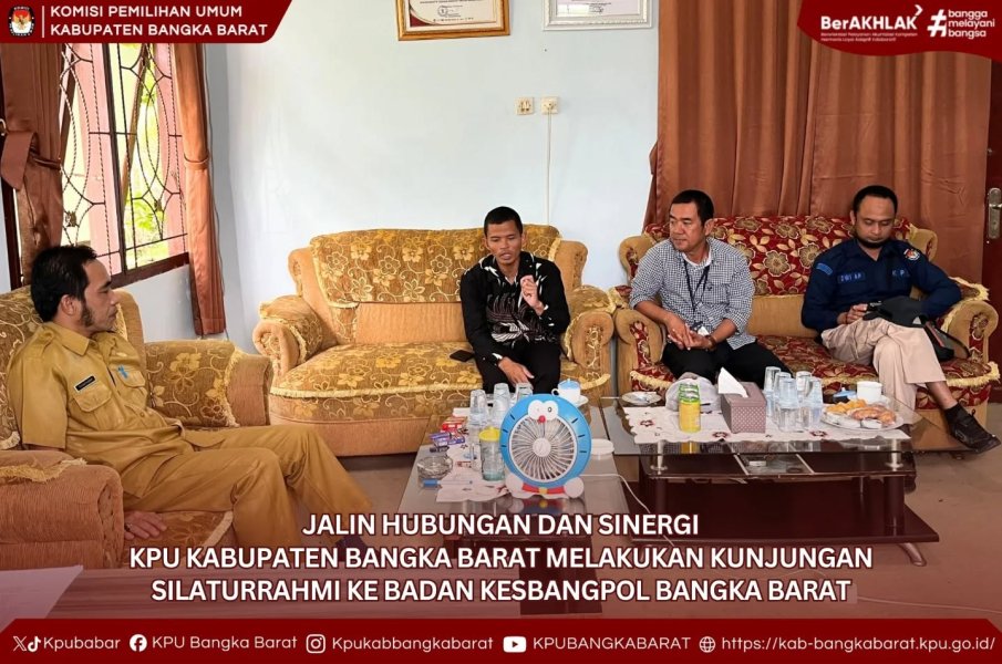 Mentok – Komisi Pemilihan Umum (KPU) Kabupaten Bangka Barat melaksanakan kunjungan silaturrahmi ke Kantor Badan Kesatuan Bangsa dan Politik (Kesbangpol) Kabupaten Bangka Barat, sebagai upaya mempererat hubungan kelembagaan dan meningkatkan sinergi antarinstansi, Selasa (13/01/2026).