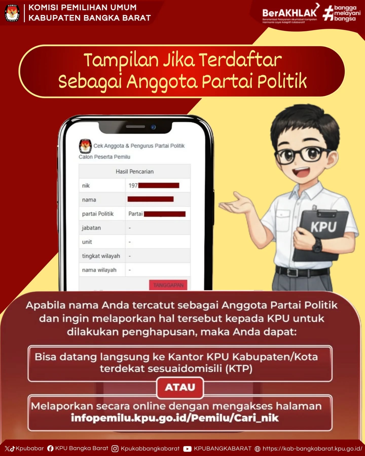 Pastikan nama dan NIK Anda tidak terdaftar sebagai anggota partai politik tanpa sepengetahuan.