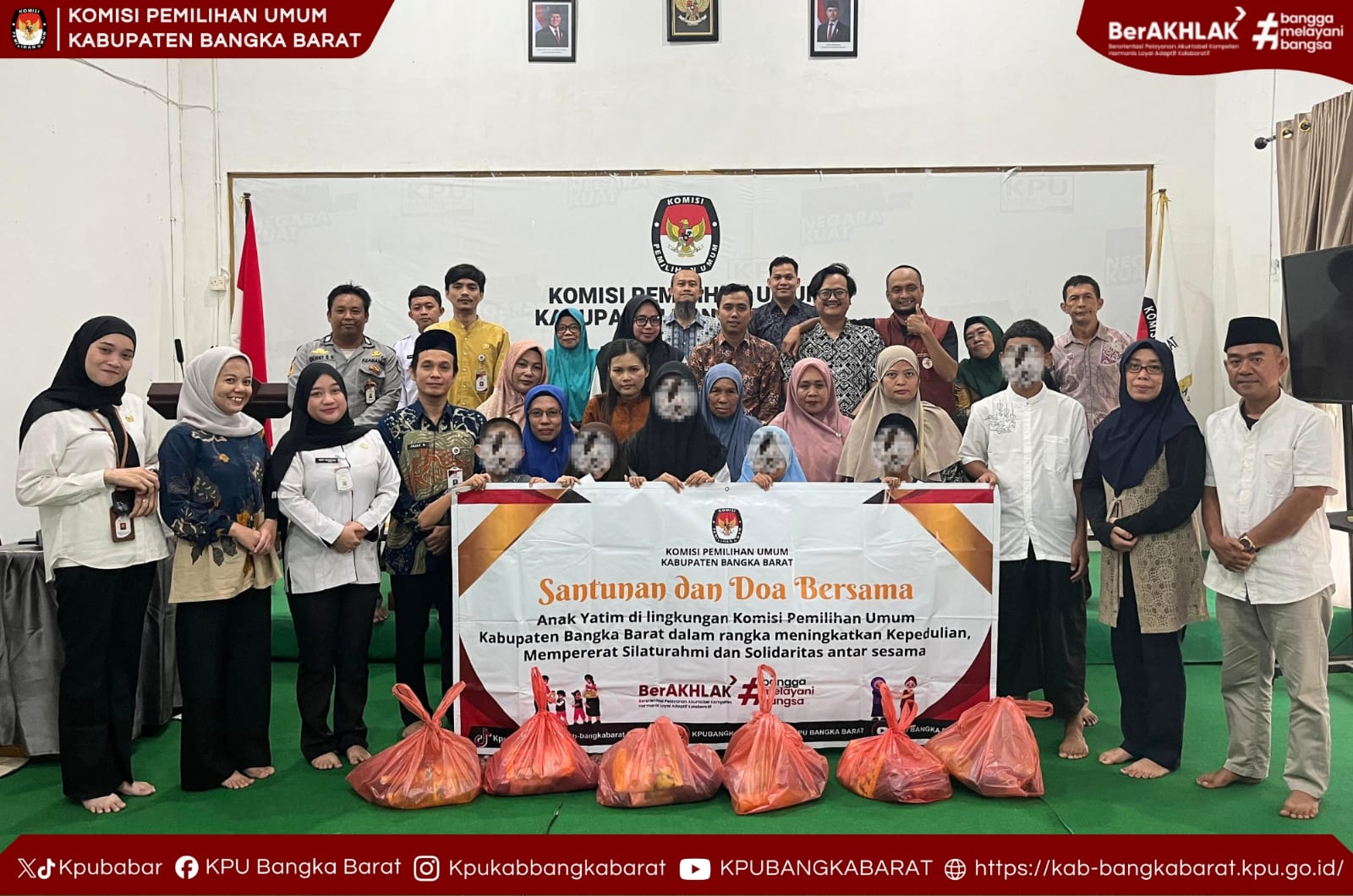Mentok - Komisi Pemilihan Umum (KPU) Kabupaten Bangka Barat menggelar kegiatan santunan dan doa bersama anak yatim/piatu dalam rangka menyambut bulan suci Ramadhan. Kegiatan dilaksanakan di ruang rapat KPU Kabupaten Bangka Barat sebagai wujud kepedulian sosial serta upaya mempererat silaturahmi, Jum'at (06/02/2026).