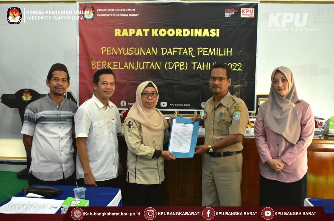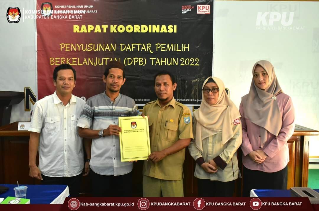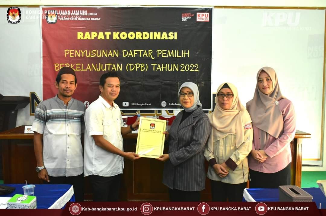 (27/6) KPU Kabupaten Bangka Barat menetapkan Hasil Pemutakhiran Daftar Pemilih Berkelanjutan Periode Juni dan Triwulan II Tahun 2022. Hasil Rekapitulasi Daftar Pemilih Berkelanjutan (DPB) Kabupaten Bangka Barat periode Juni dan Triwulan II Tahun 2022 adalah 134.440 pemilih dengan rincian 69.090 pemilih laki-laki dan 65.350 pemilih perempuan. Jumlah ini diperoleh dari DPB bulan sebelumnya (Mei 2022) yang berjumlah 134.542 pemilih ditambahkan 44 pemilih baru dan dikurangi pemilih Tidak Memenuhi Syarat (TMS) sejumlah 146 pemilih, dan pemilih ubah data sejumlah 87 pemilih.
