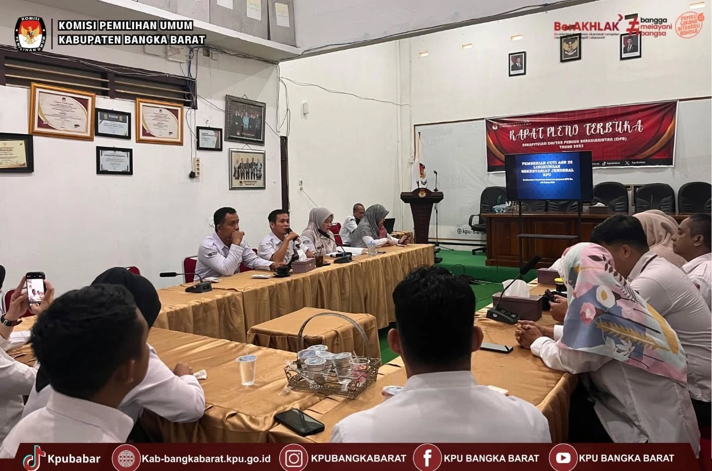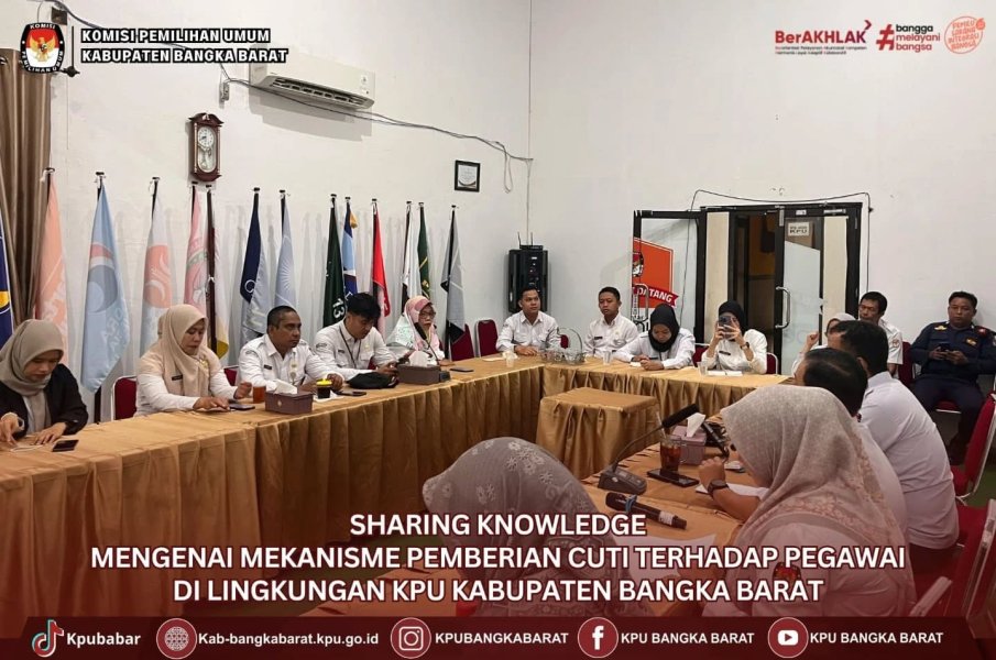Komisi Pemilihan Umum (KPU) Kabupaten Bangka Barat melaksanakan kegiatan Sharing Knowledge mengenai mekanisme pemberian cuti terhadap Pegawai yang dilaksanakan di ruang rapat Kantor KPU Kabupaten Bangka Barat, Mentok.