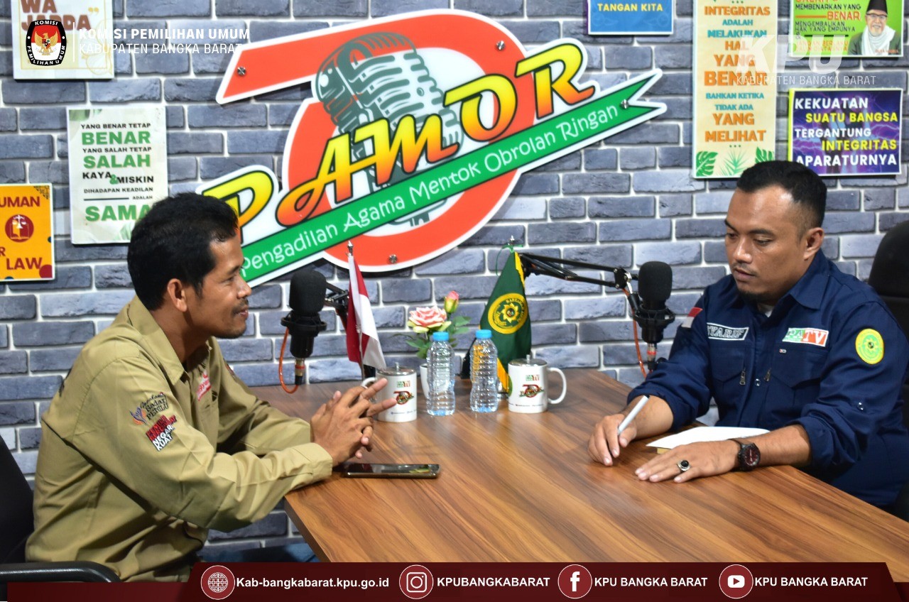 Dalam kesempatan tersebut, Ketua KPU Bangka Baratjuga berkesempatan mengikuti audiensi Podcast milik Pengadilan Agama Mentok yang dipandu langsung oleh Ketua Pengadilan Agama Mentok - Bapak Syarif. Dalam podcast tersebut, Ketua KPU -Bapak Pardi menyampaikan tahapan Pemilu yang sedang berjalan yakni pendaftaran Partai Politik. dalam hal ini, beliau menghimbau agar masyarakat segera melakukan pengecekan apakah tertera dalam kepengurusan partai politik, utamanya bagi yang berkepentingan.