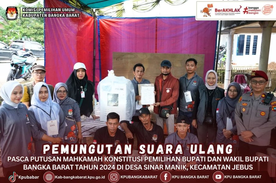 Pemungutan dan Penghitungan Suara Ulang (PSU-MK) pasca putusan Mahkamah Konstitusi (MK) telah sukses dilaksanakan di Desa Sinar Manik, Kecamatan Jebus pada Sabtu, 22 Maret 2025. Kegiatan tersebut berlangsung mulai pukul 07.00 hingga 16.30 WIB, dengan pengawasan penuh oleh Pengawas TPS ( PTPS) yang tersebar di empat TPS, yakni TPS 1, TPS 2, TPS 3, dan TPS 4.