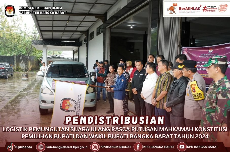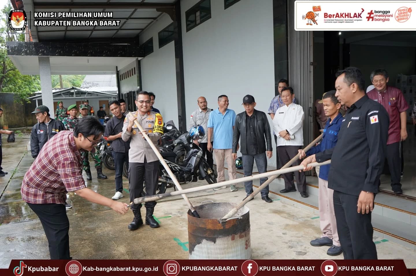 Ketua Komisi Pemilihan Umum (KPU) Kabupaten Bangka Barat Bapak Darjiyono, S.Sos.I. melaksanakan pemusnahan kelebihan surat suara dan pelepasan pendistribusian logistik Pemungutan Suara Ulang pasca putusan Mahkamah Konstitusi di Gudang Logistik KPU Kabupaten Bangka Barat, pal 2 Kecamatan Mentok.