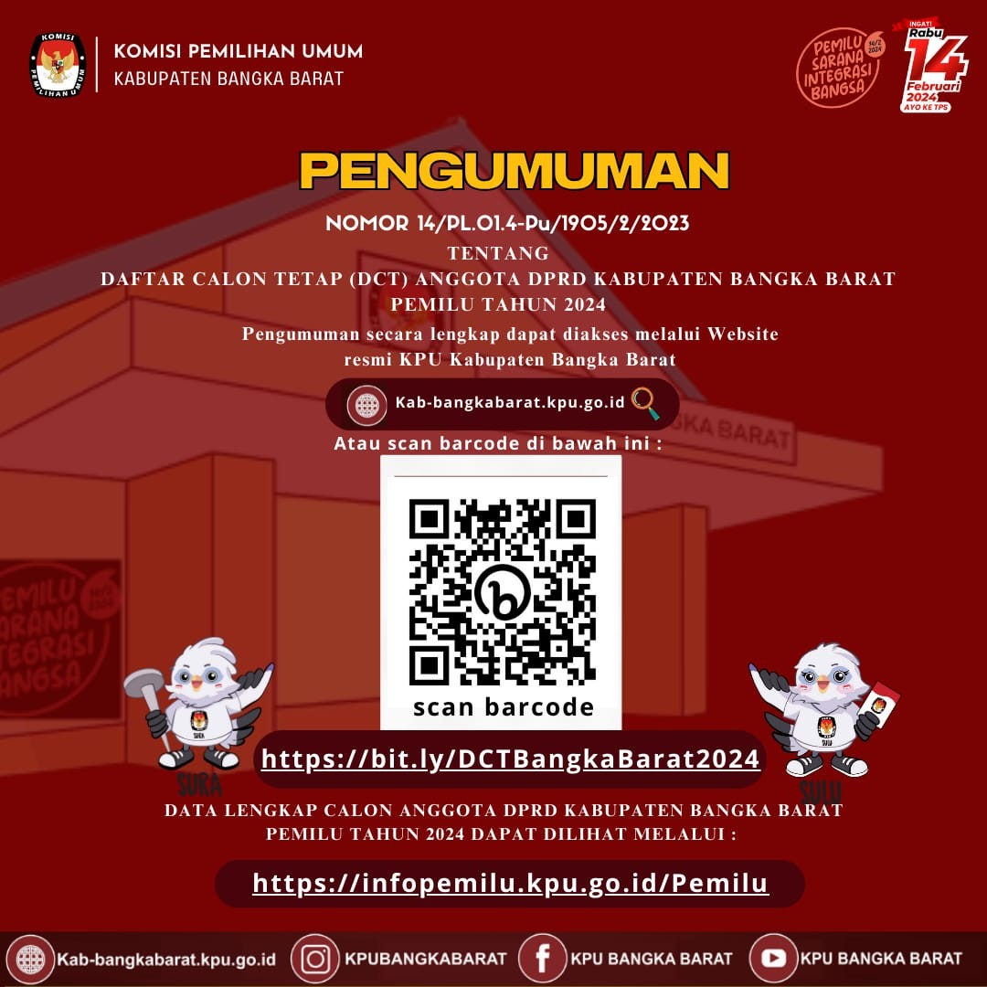 Pengumuman Daftar Calon Tetap (DCT) Anggota DPRD Kabupaten Bangka Barat Dalam Pemilu Tahun 2024