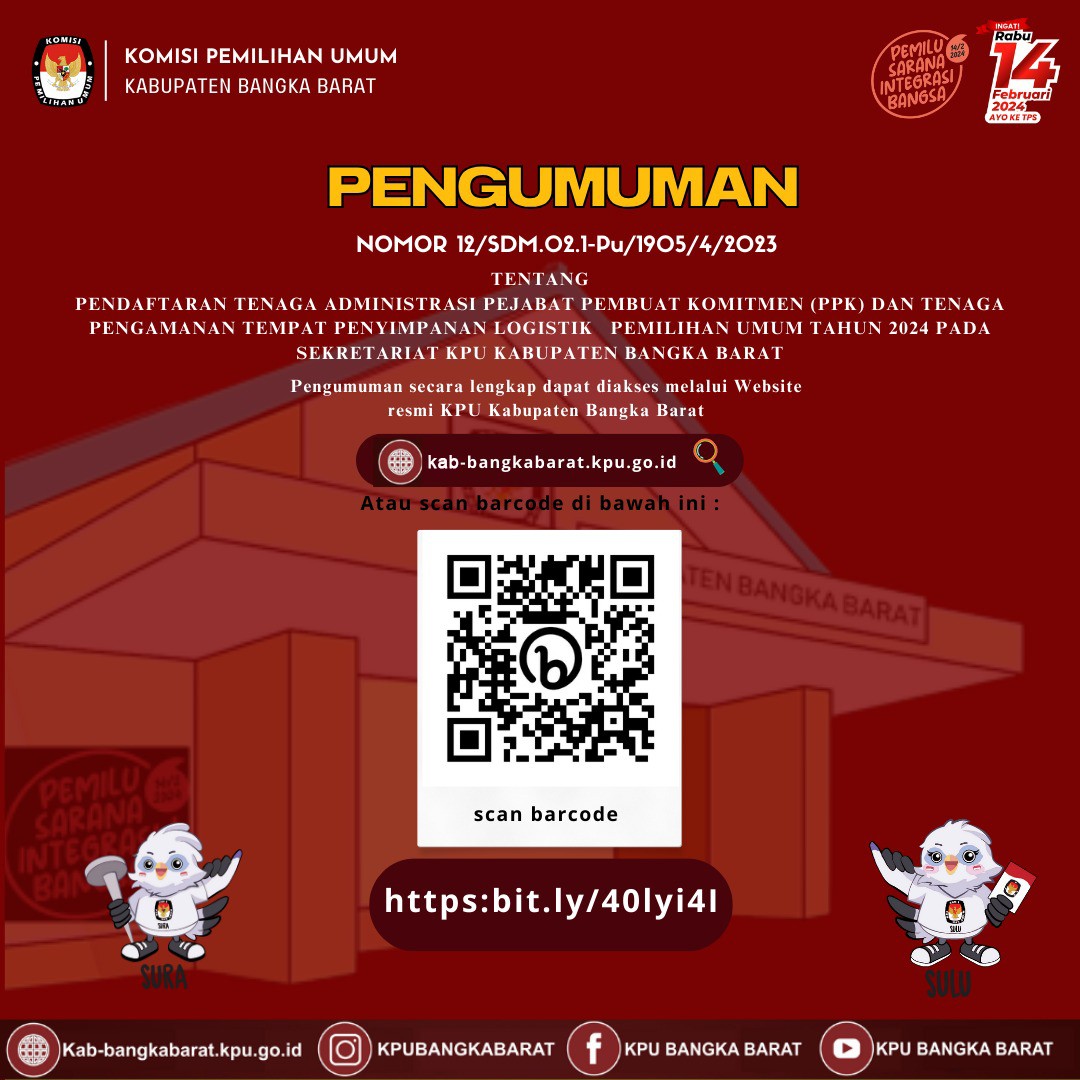 Sekretaris KPU Kabupaten Bangka Barat membuka kesempatan bagi putra putri terbaik bangsa untuk menjadi :