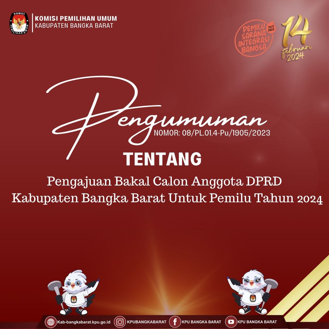 Pengumuman Tentang Pengajuan Bakal Calon Anggota DPRD Kabupaten Bangka Barat untuk Pemilu Tahun 2024