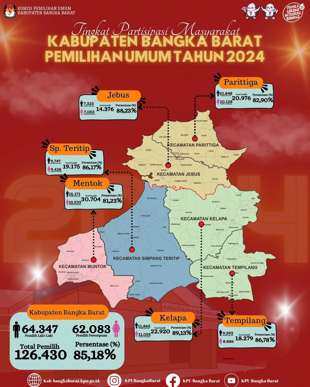Sekali lagi, kami menyampaikan apresiasi setinggi-tingginya kepada seluruh masyarakat Kabupaten Bangka Barat yang telah turut serta dalam Pemilihan Umum Tahun 2024. Terima kasih atas kepercayaan dan partisipasinya.